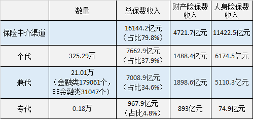 囊括了个代、兼代、专代的保险代理渠道一直是国内最重要的保费来源之一。从账面数据看,近十年来,保险中介渠道实现的保费占比在80%左右,其中保险代理在其中占比超过85%,可谓渠道中的重中之重。(见下表)
