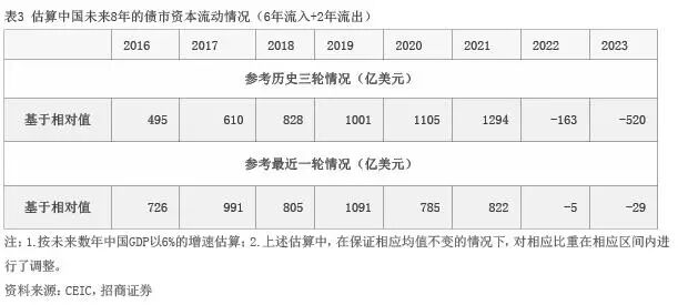 图2 估算中国未来8年债券市场国际资本流动情况