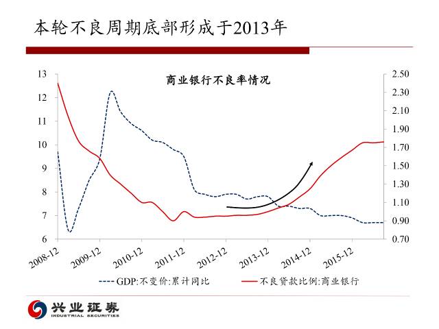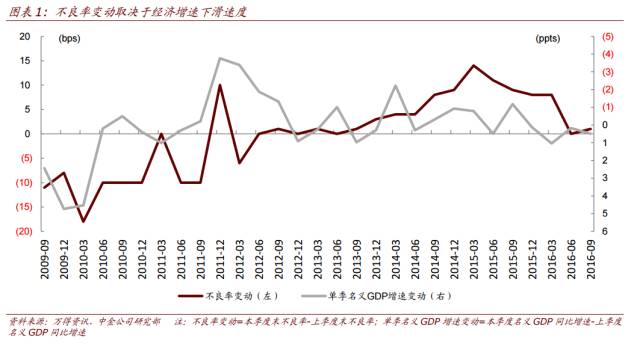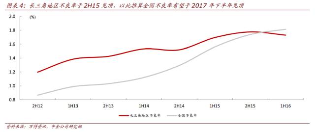 我们看好2017年银行不良周期反转。明年银行不良形成率(即不良二阶导,或不良率曲线的斜率)大概率继续回落,甚至不良率也有可能见顶。并且,我们对明年银行不良形成率回落的判断并不需要很强的宏观假设,即使明年经济下滑,但只要不加速下滑,银行不良形成率回落依然有宏观上的支撑。