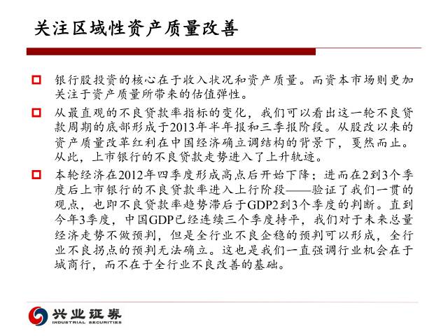 5、国信证券:重点关注区域资产质量改善(看好浙江、江苏、广东、山东、福建)