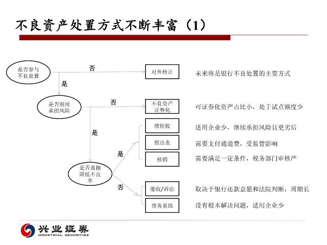 国有银行领航债转股方案落地,助于银行收益留存。银行成立专司债转股业务的全资子公司形式具有多种优势:一银行对于转股项目情况具有信息优势,有利于缩短处置时间,进行更为有效的定价,同时体系内的债权划转将更为高效;二银行尤其是大型银行具有足够的资金实力成立全资子公司,这将确保不良处置的损益内化,最大限度将处置收益留存于银行体系内;三子公司的形式有利于与母公司实现风险隔离,实现从银行表内真正转出。