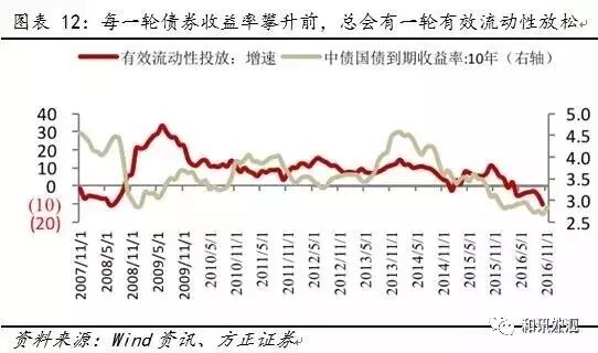 这一次的钱荒究竟是通胀回升还是政策去杠杆所造成的,其实没有那么重要。首先我们要意识到:无论是通胀回升还是金融资产的过度交易,都是过去一段时间货币超发的产物。因此,可以看到在每一轮债券收益率明显攀升之前,货币当局的有效流动性总会出现一轮放松。