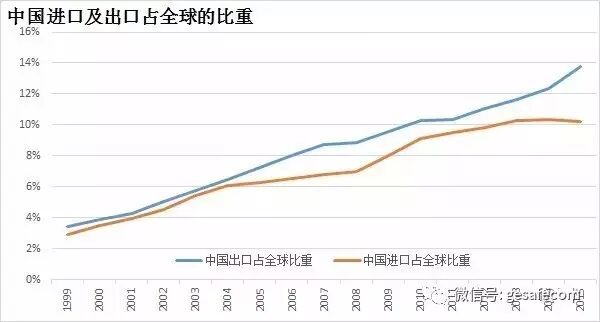 但是从贸易来看,中国进口占全球贸易比重约10%,并且有持续的贸易顺差。