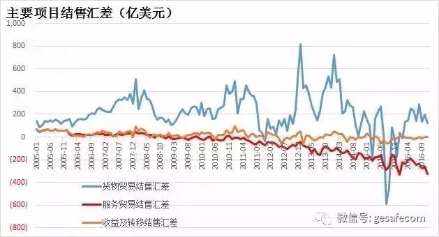 如果我们把经常项目结售汇差分解一下,主要是两大项影响:货物贸易结售汇差和服务贸易结售汇差。货物贸易结售汇差在811汇改短暂的冲击之后,目前已近转正。毕竟企业的生产经营都在国内,成本支出还是以人民币为主,除非不想继续干下去了,否则最终还是得结汇。所以货物贸易对外汇储备的冲击,会是非常短暂的,不可能持久。目前持续还有结售汇逆差的,就是服务贸易结售汇部分,老百姓每人每年5万美元,估计大部分被统计到这个里面去了。