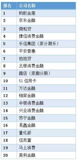 来源:消费金融市场观察2016最具潜力的消费金融公司近期,某权威机构根据估值、商业模式、交易额、用户活跃度等多个维度评选出了20家2016最具潜力