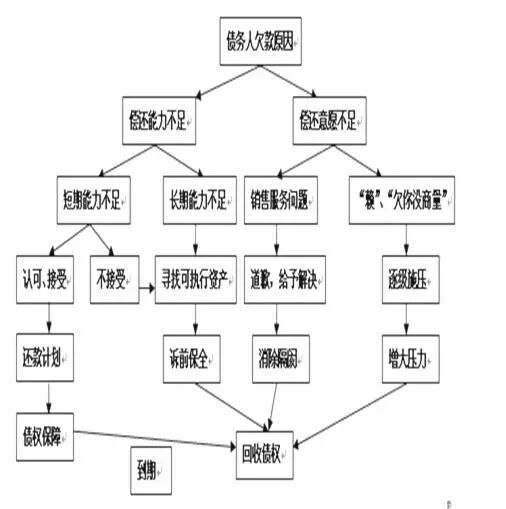 1、一般而言,客户的欠款原因无外乎偿还能力不足和偿还意愿不足两类,我们掌握了客户的欠款原因,才能实现有效地对症下药,下面我用一张图说明客户的欠款原因和基本的解决思路。