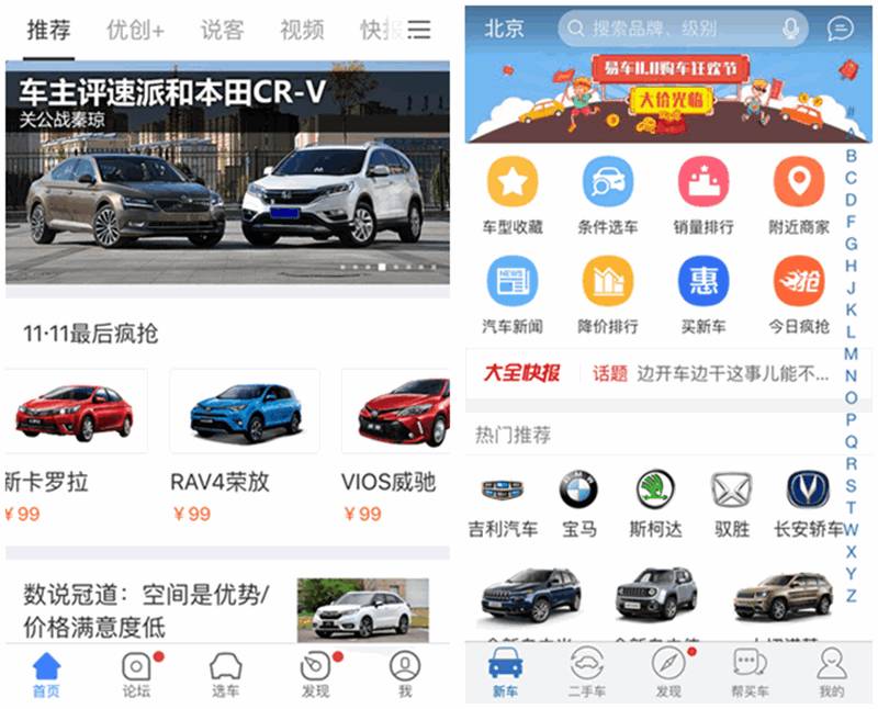 与二者在PC时代的优势倾向类似,汽车之家在内容端更加丰富,而易车网更专注于买车交易环节的服务。