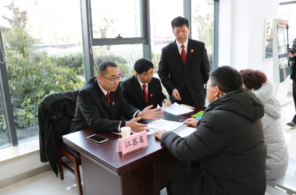 12月28日,最高人民法院第三巡回法庭在江苏南京揭牌,巡回法庭随即正式办公。来自江苏、浙江等地当事人陆续来到巡回法庭递交材料。首个工作日秩