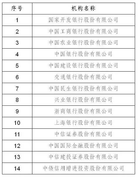 来源:银行间市场交易商协会10月31日,中国银行间市场交易商协会公布信用风险缓释工具核心交易商名单(14家)、信用风险缓释凭证创设机构名单(10