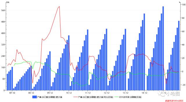 醋酸产量下行的同时,出口也逐渐减少,醋酸对甲醇的需求增长基本陷于停滞。