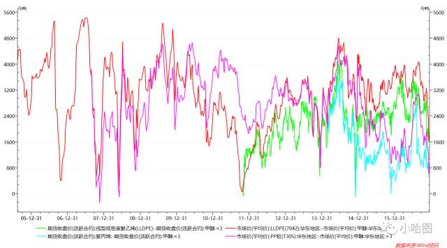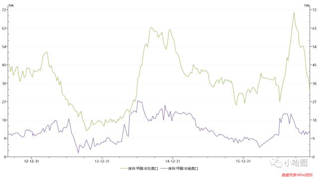 这也很容易理解,由于国内甲醇产能很大一部分都是聚烯烃厂家上游配套设施,且很多甲醇厂家都在西部地区,而作为另两个主要消费地的华东和华南,供给变化则更为敏感。其中很大一部分又依赖进口货源,华东约占1/3,华南超过80%,因此华南和华东市场对于边际反应最敏感,短期波动与期货相关度最大。