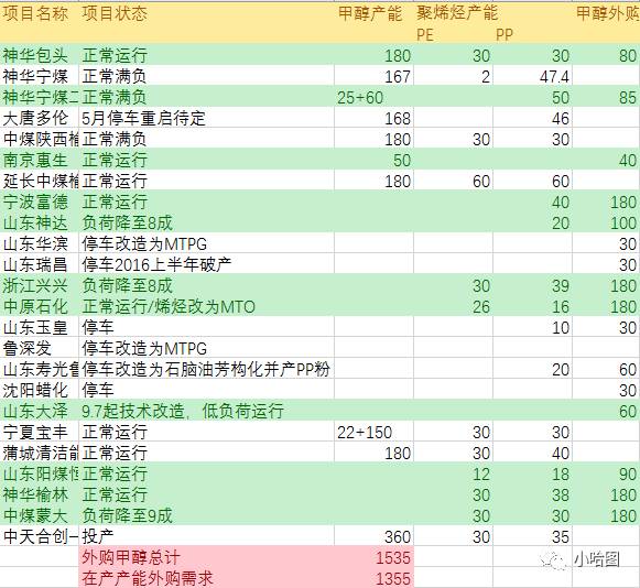 考虑甲醇这波凶猛的上涨从2016年年初就开始了,然而产量并没有凶猛地上升,因此问题显而易见——大量的产能装置已经在熊市中因为种种原因长期停产。