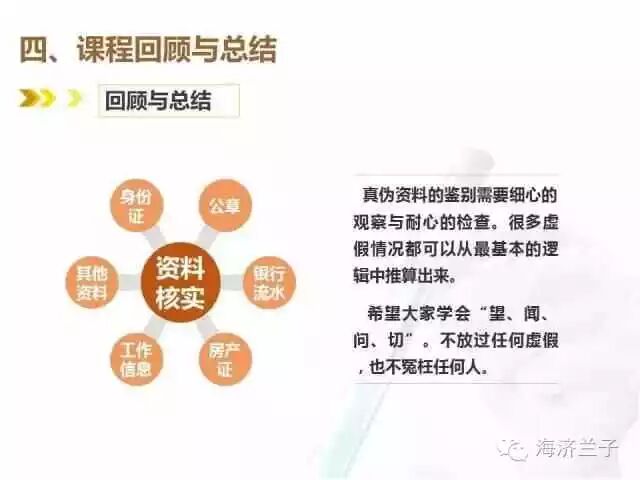 辨别客户提交的资料需要特别细心的观察,与耐心的检查,这就需要信贷员在工作中慢慢积累经验,学会对“望、闻、问、切”。