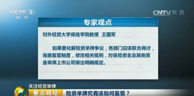 对外经贸大学保险学院教授王国军表示,如果要化解险资举牌争议,各部门应该联合商讨,完善监管制度,修改相关规则,对保险资金及其他资金举牌上市公司做出明确规定。(证券中国网)