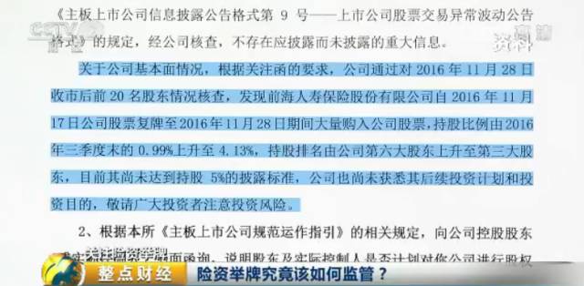 保险机构按照监管规则以自有资金进行财务投资,既可获取市场收益,又可从专业视角监督上市公司,这本身是一件双赢的制度安排。但个别保险机构“野蛮”举牌引发争议也给监管部门提出了新课题,险资举牌如何监管?