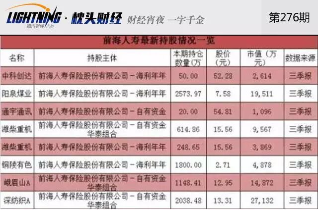 相较于上面几家险资,富德生命人寿的持股家数较少,从目前披露的数据来看,三季末仅持有北京文化、农产品、金地集团、浦发银行等屈指可数的几家上市公司,但其所持有股份市值并不低,仅所持浦发银行市值就超过700亿元。