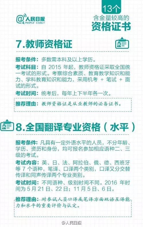 人力资源和社会保障部日前公布了2017年度专业技术人员资格考试工作计划。梳理发现,对比2016年工作计划,职称外语并未被列入。 今年3月中共中央印发的《关于深化人才发展体制机制改革的意见》明确,对职称外语和计算机应用能力考试不作统一要求。 多地职称评审不用再考外语和计算机 12月1日,北京市人力社保局发布《关于北京市职称外语和计算机应用能力考试有关问题的通知》,明确自2017年1月1日起,外语和计算考试不作为申报职称评审的必备条件,这两项考试彻底与职称评审松绑。 11月30日,安徽省出台《加强全省基层专业技术人才队伍建设的实施意见》,其中规定,合理设置基层专业技术人才评价指标,突出以品德、能力、业绩和贡献为主的评价导向,对论文、科研等不作硬性要求。县及县以下基层专业技术人员参加职称评审时,职称外语和计算机应用能力不作要求。 11月23日,江苏省出台《关于调整我省职称外语和计算机应用能力政策有关问题的通知》,明确从2017年1月1日起,不再将外语水平与职称评审挂钩,取消职称计算机应用能力要求,聚力人才发展体制机制改革创新,努力为人才松绑。 国务院:再取消114项职业资格许可和认定事项 国务院总理李克强11月23日主持召开国务院常务会议,会议决定,在2014年以来已分六批取消319项职业资格的基础上,再取消临时导游、餐厅服务员、保洁员等114项职业资格许可和认定事项。至此,国务院部门设置的职业资格已取消70%以上。 会议决定,对剩余的职业资格要尽快制定目录清单并向社会公布,清单外一律不得设定职业资格许可和认定事项。 同时,要制定职业标准和评价规范,积极推动由企业和行业组织自主开展技能评价,为专业人才搭建市场化的职业发展通道。 实用!12个含金量较高的资格证书 去粗取精,留下的都是精华。现在还有哪些含金量高的职业资格证书?获取资格有哪些要求?资格认定考试都考什么内容?