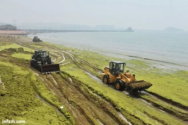 ▲2016年夏,浒苔再度入侵青岛。由于陆地污染入海,中国近海大部分海域都处于亚健康状态。(东方IC/图)全文共2783字,阅读大约需要5分钟。近10年,