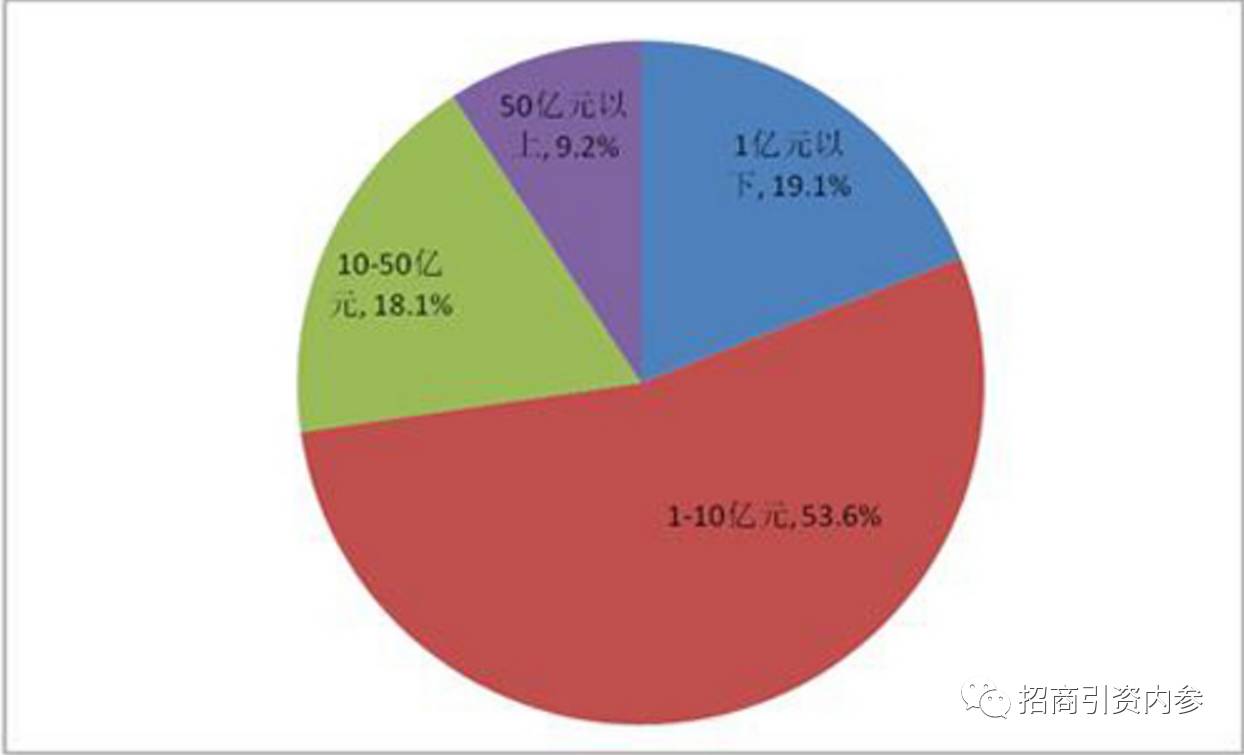 从投资规模看,1亿元以下的项目118个,占签约项目的比例为19.1%;1-10亿元项目332个,占53.6%;10-50亿元项目112个,占18.1%;50亿元及以上项目57个,占9.2%。规模在1-10亿元之间的签约项目最多,其次是1亿元以下的项目,10亿元以下的PPP项目落地率较高。