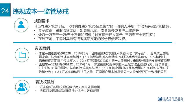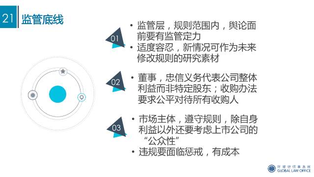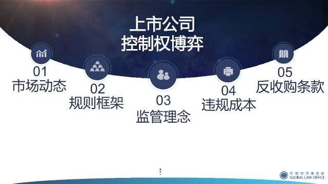 这次给各位小伙伴分享一个讲座的 PPT,主要涉及近两年市场关注比较多的几个控制权争夺案例的相关情况,以及上市公司控制权争夺过程中的主要监管规则、违规成本、章程防御条款等,供大家细细品读。