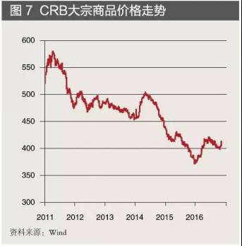 大宗商品市场触底反弹。供求因素和流动性状况都对全球大宗商品市场有深刻影响。2016年上半年,由于供给中断等偶发因素的提振,大宗商品出现较大幅度的反弹;但进入下半年,由于全球经济依旧疲弱,大宗商品市场上除了少数品种,如锌、镍、棉花等,其余商品价格都呈现了回调趋势(见图7)。再平衡、高波动成为全年大宗商品市场的两大主题。市场需要在低价再运行一段时间,以达到“去库存”的目的,挤出过剩供给,回归供需平衡。