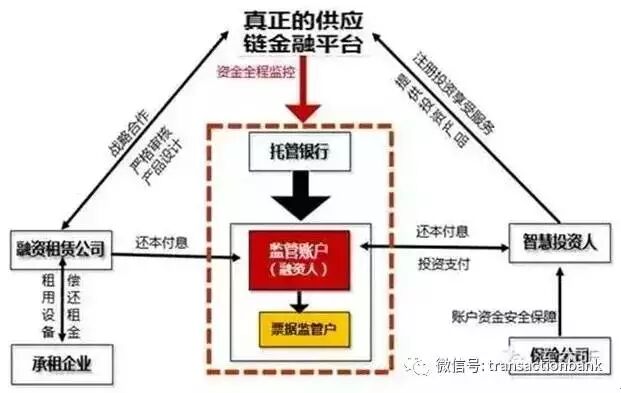 五重还款来源保障:承租企业支付信用,担保企业保证支付,承租企业实际控制人连带责任保证支付,融资人(融资租赁公司)不可撤销回购担保,第三方资产管理公司回购保障。这类产品的风控标准关键点除了把控承租企业和担保企业外,还需要贷前严格融资租赁公司准入和贷后对融资租赁公司动态监测。供应链金融平台通过自主研发的融资租赁公司准入模型,实行定性指标、定量指标相结合的方式严格融资租赁公司的准入标准,从源头控制风险。贷后,平台自建企业动态跟踪监测系统,通过密切跟踪关注发行租赁公司及基础资产承租人的主要的财务数据、生产运营管理机制、企业征信等情况,进行系统性的定期风险量化分析,提前预判融资租赁企业、承租企业的信用风险,一旦出现预警,立刻停止新增业务开展。