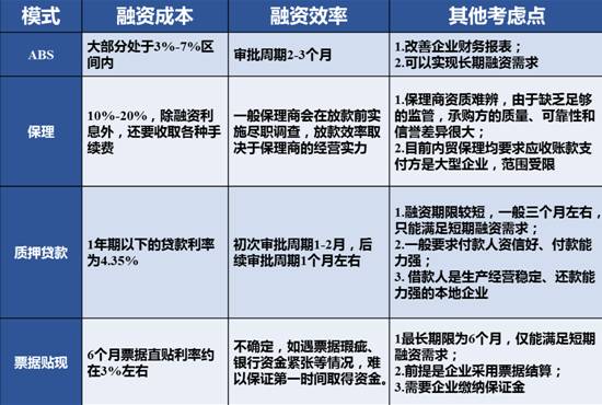 ABS在应收帐款领域与其他融资方式相比,存在如下特点: