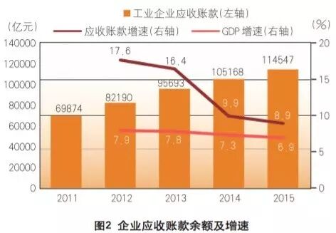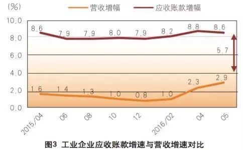市场广阔,开展保理业务潜力较大。全国工业企业应收账款余额逐年抬高,目前规模已达约11.5万亿元。同时,近年来应收账款增速一直高于营业收入增速,截至2016年5月,二者的差值为5.9%,这意味着更多收入转化为了账面数字,而非实际的资金收入(图2、图3)。