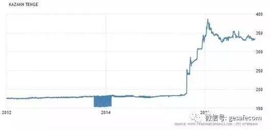 哈萨克斯坦货币坚戈对美元的(官方汇率)走势(2012-2016)