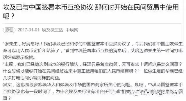 埃及(该国在经历美元荒、支付手段荒)的中国、埃及商人翘首盼望使用人民币结算及流通,但被行政约束阻断了