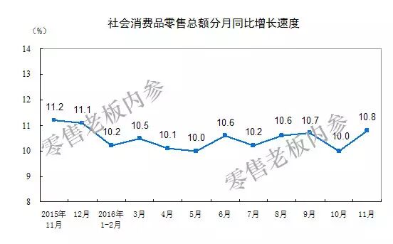 来源:零售老板内参新的2017年,零售行业的商机在哪里呢?趋势1. 零售额同比、环比增速双双回升国家统计局最新发布的数据显示, 2016年1至11月份,