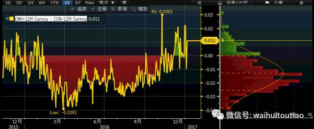 Cheung指出,特朗普的政策实施方向和对中国的立场,在2017年对美元和人民币走势有着非常关键的影响,而且,中美紧张关系在去年12月开始有升温趋势,特朗普上任后任何挑衅行为都会使贸易战争的爆发风险升高,并可能会引发投资者大量抛售离岸人民币。