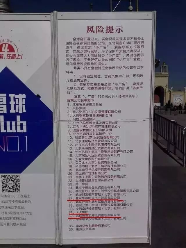 去年10月,北京金博会上,不少互联网金融企业前来“蹭热度”,主办方为此还发出了“禁入令”,盛世汇海与e租宝、大大集团、华赢凯来都位列其中。除此之外,此前饱受质疑的善林金融,6亿借款去向成迷的通金所等都在禁令中。