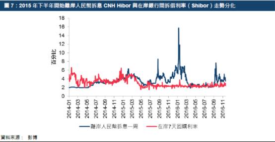在目前离岸人民币市场整体规模收缩的情况下,资产配置失衡带来的扩散效应可能有所放大,尤其是临近季末假期(中秋、国庆等时点),内地银行间市场因节日休市,季节性因素导致资金回流在岸,这也是2016年9月底至10月初国庆前,离岸人民币市场拆息出现大幅波动的主要背景。