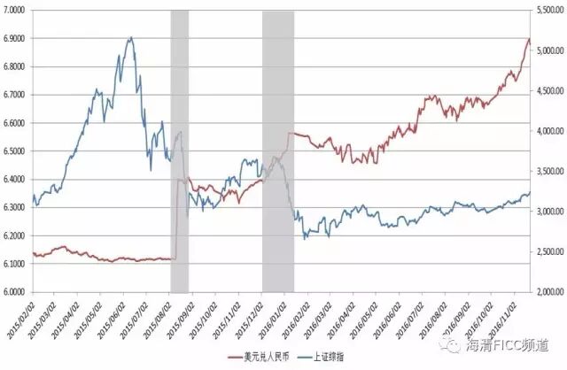 首先需要强调,人民币并非一味的单边贬值,美元走弱时确实会出现人民币升值。在16年11月24日-12月7日,美元指数贬值1.5%,同期的人民币兑美元升值0.5%。对比近期的美元升值时人民币贬值幅度,12月8日至12月15日美元指数升值3%,人民币贬值1.5%。这表明,已经出现了美元升值时人民币贬值,美元贬值时人民币升值,且弹性系数基本相同。