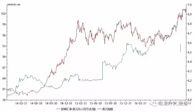 文:邓海清,陈曦来源:海清FICC频道(ID:haiqing_FICC)2017年1月4日以来,美元兑人民币指数大幅下行,人民币大幅升值,其中美元兑离岸人民币指数从1