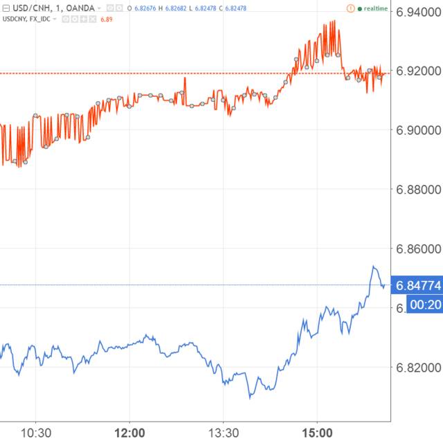人民币新年大戏还在上演。连续两日走强之后,6日上午离岸、在岸人民币均出现不同程度走软。今日午后,在岸人民币快速走低,最低至6.9375,较中间价6.8668跌近700点,截止本周五北京时间16:00,在岸人民币兑美元报6.9186,较中间价6.8668下跌518点,跌幅0.75%。