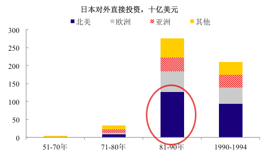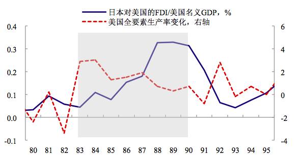 另外一个值得注意的现象是,得益于第一次石油危机后的成功转型,日本企业生产效率在当时要明显高于美国企业(这也是造成美国半导体、汽车等企业市场份额被日本抢占的重要原因之一)。而在日本对美直接投资快速增长期间,美国企业生产率也出现了明显改善,我们认为这背后也可能有日本企业对外投资中的技术对外溢出效应的影响。