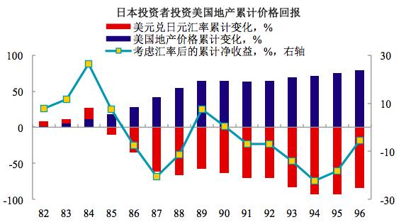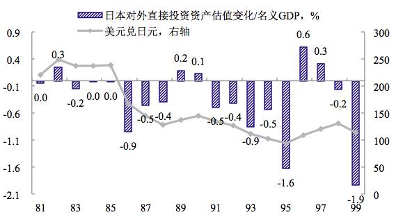 日本资产价格泡沫破裂致使海外资产被迫抛售以补充国内流动性,从而导致对外投资浮亏变为实际亏损。随着日本资产价格泡沫破裂,以及之后日本金融体系逐渐开始出现问题,日本不得不在日元升值后的高点(即日元计海外资产估值的低点)抛售海外资产以补充国内流动性,从而导致前期日元升值所造成的对外投资浮亏转化成实际亏损。这实际上也造成了日本国民财富的大幅缩水。
