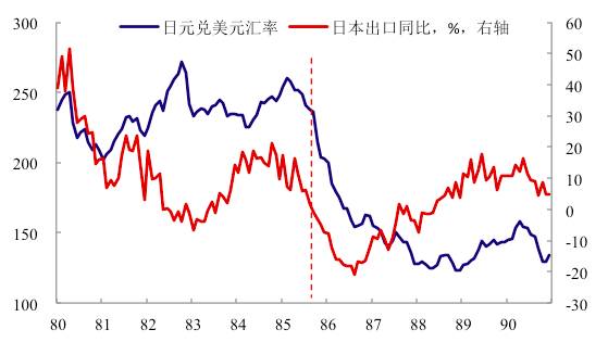 图表20:“广场协议”后日元升值对日本出口形成打击
