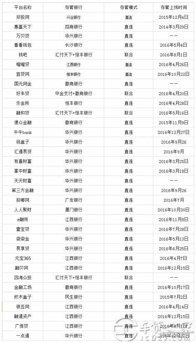 截至2017年1月最新车贷业务平台实现银行存管名单: