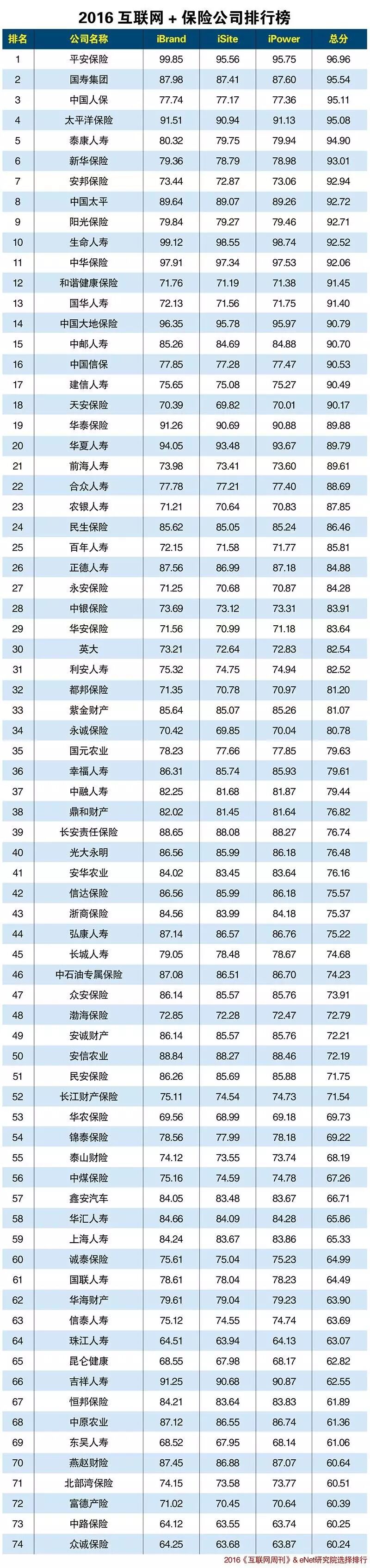 传统保险行业已经无法满足受众的需求,随着互联网的高速发展,保险行业也正式成为了“互联网+传统行业”中的一员。在保险行业这个拥有万亿级财富的市场中,既存在着互联网对老牌保险公司的改造,也存在着新兴的互联网保险公司,本榜对这些公司进行了排名,排序的依据是根据这些公司的发展规模、总资产和发展潜力拟定的,通过榜单的对比可以发现行业中存在的潜在问题并预见出“互联网+保险行业”下一步的发展趋势。