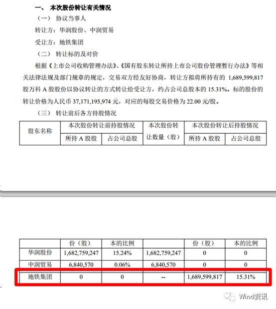 晚间万科A公告显示,华润股份和中润贸易将全部股份转让给深铁,转让价格为人民币372亿元,对应每股交易价格22元。转让后,地铁集团持股15.31%。以万科A最新收盘价20.40元/股计算,深铁接盘溢价7.8%。