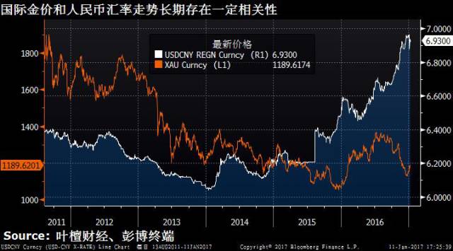 这就意味着,通过黄金价格换算出来的人民币汇率一定程度上接近真实水平。这个数是多少呢?根据1月11日数据,上海黄金交易所黄金t+d合约的价格是268.75元/克,纽交所黄金期货价格为1187美元/盎司,统一单位后计算出的人民币兑美元汇率是7.042。