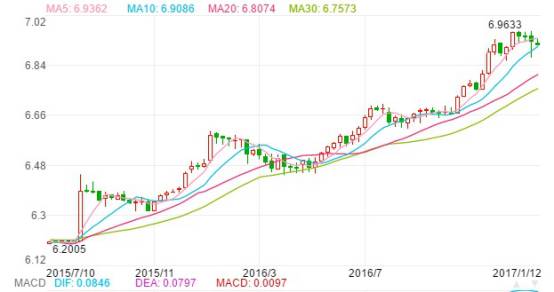 2016年下半年人民币兑美元汇率大幅贬值,很大程度上源于美元指数一路走强。因此,判断美元指数的走势,对人民币汇率的未来走势非常重要。 2017年的美元指数很难复制2016年下半年的强势上升态势,而是可能在100左右上下波动。这是因为市场似乎对特朗普冲击过于乐观了,特朗普政府究竟 能够出台多大程度的宽松财政政策,美联储究竟能在2017年加息几次,目前都面临较大不确定性。由此判断,105与110将成为美元指数上行的两道重要阻力线。考虑到利差收窄、投资回报率下降、金融风险显性化等因素,2017年人民币兑美元汇率依然会面临贬值压力。