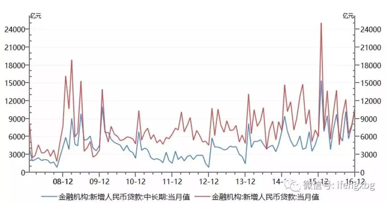 值得一提的是,2016年以来,居民部门中长期贷款呈现大幅上涨态势,甚至居民部门中长期贷款占新增贷款比例达到了100%,如2016年7月的数据,新增人民币贷款4636亿元,其中住户部门贷款增加4575亿元。而居民中长期贷款中主要为个人房贷。
