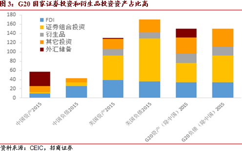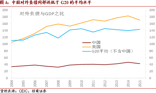 对外资产需要对外负债来平衡,资本流出需要资本流入来平衡。同样观察G20国家,截至2015年末,其平均对外负债与GDP的比为143.4%,对外资产与GDP的比为124.7%,对外净负债与GDP的比为18.7%,其高对外资产存量由高对外负债存量为基础;中国对外负债与GDP的比为42.5%,对外资产与GDP的比为57.2%,对外净资产与GDP的比为14.7%。据此,就不难理解为何中国的高层最近一再强调要“积极”利用外资。