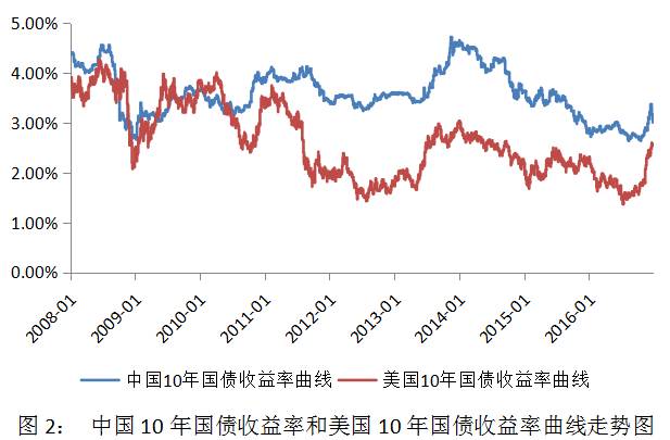 (2)我国经济并非完全独立的经济体,人民币并非世界货币,在汇率相对稳定的前提下,人民币利率不可能完全脱离美元利率(如图2所示)。
