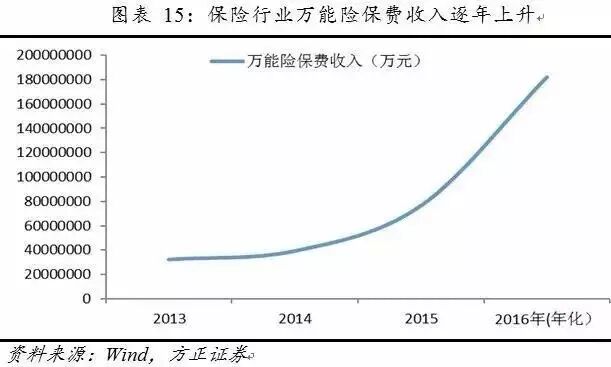 实际上,在过去的三年里,万能险已经表现出了非常快的发展速度,从今年来看,相对于2013年其保费增长5.6倍,复合年增长率78%,这个发展速度在很大程度上来自于其较高的收益水平。