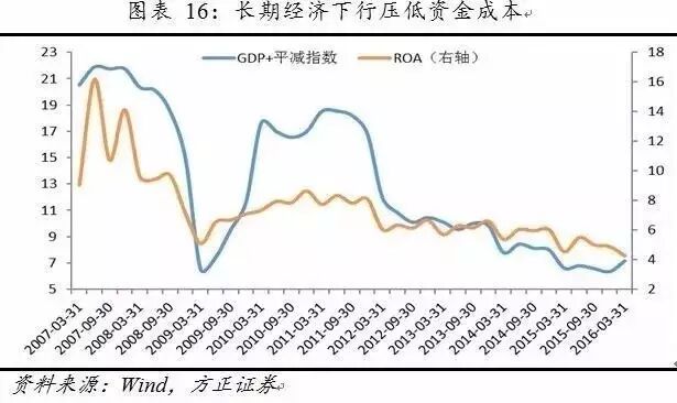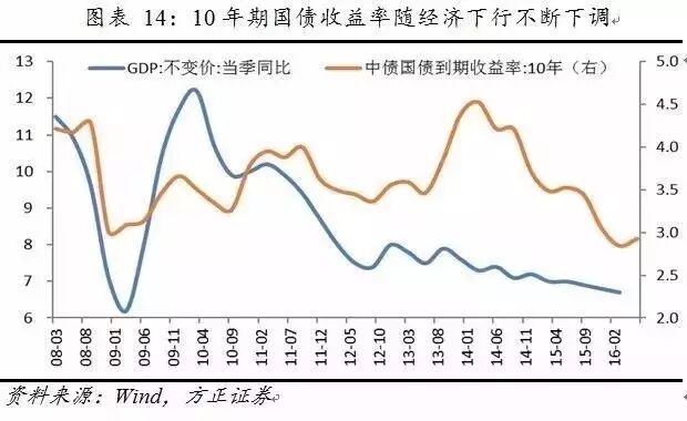 中国利率市场化以来,资产对绝对收益不断下降。2015年下半年的长久期债、2016年初的低信用债、2016年一季度的信托票据产品以及2016年二季度的委外资金的收益率分别出现了相对其他品种更快的下降,资金在一点一点地通过加大风险容忍度来换取高收益。